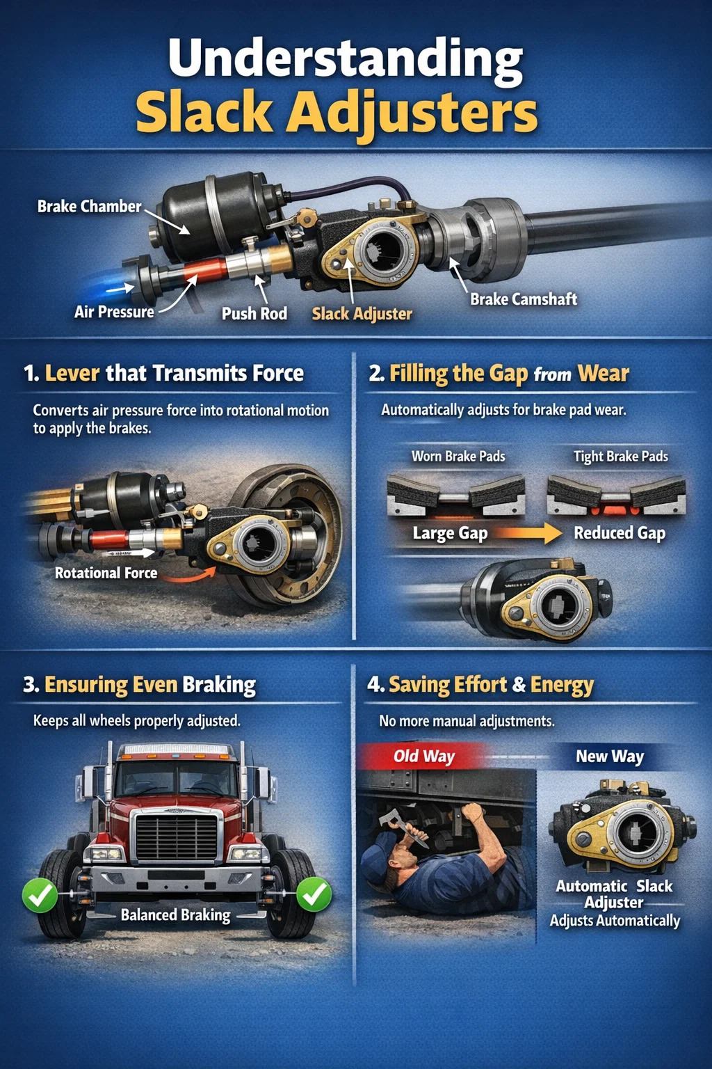 Laza beállítók olyanok, mint egy „fordító” és „automatikus menedzser” a nagy teherautók és buszok fékrendszerében. A fékkamra és a féktengely között helyezkednek el.